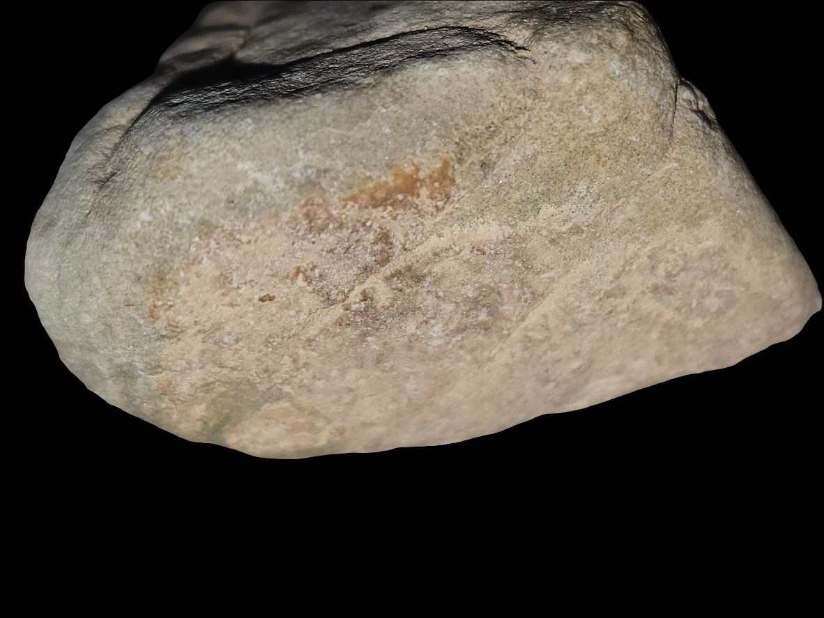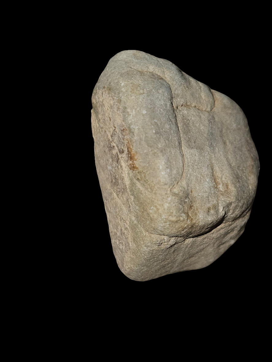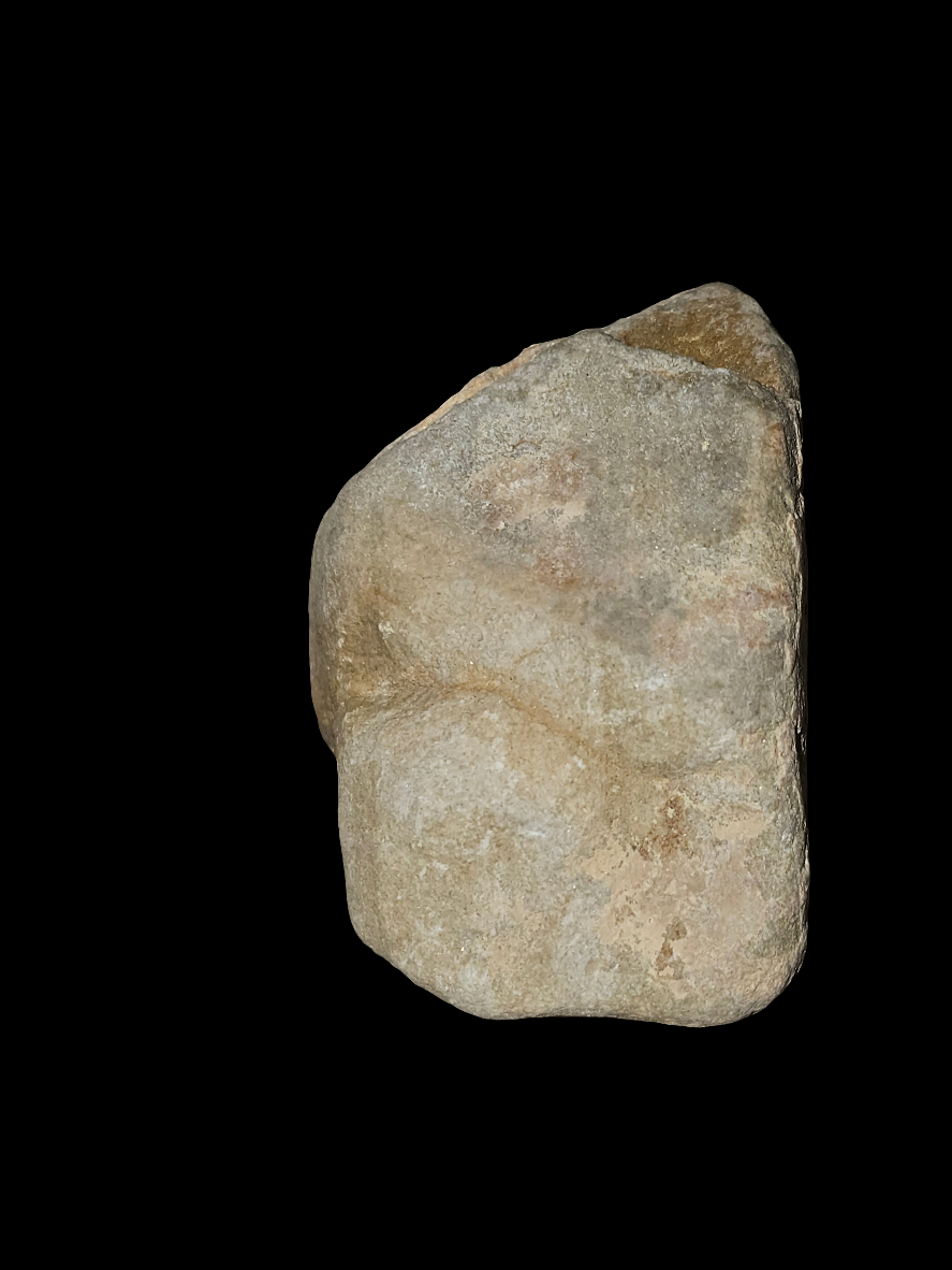 A pale stone with soft beige tones and faint layering, giving it the look of something both fragile and enduring. Its edges reveal shard-like fractures, while its muted surface feels like a whisper carved in stone.
